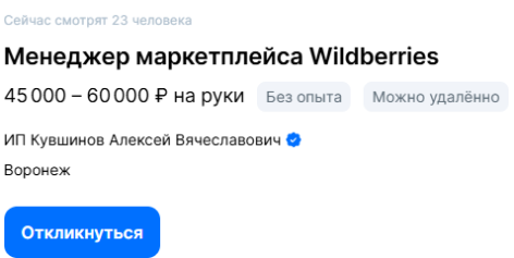 За 3-4 дня вы получите практические навыки для того, чтобы устроиться на вакансию менеджера маркетплейсов WB